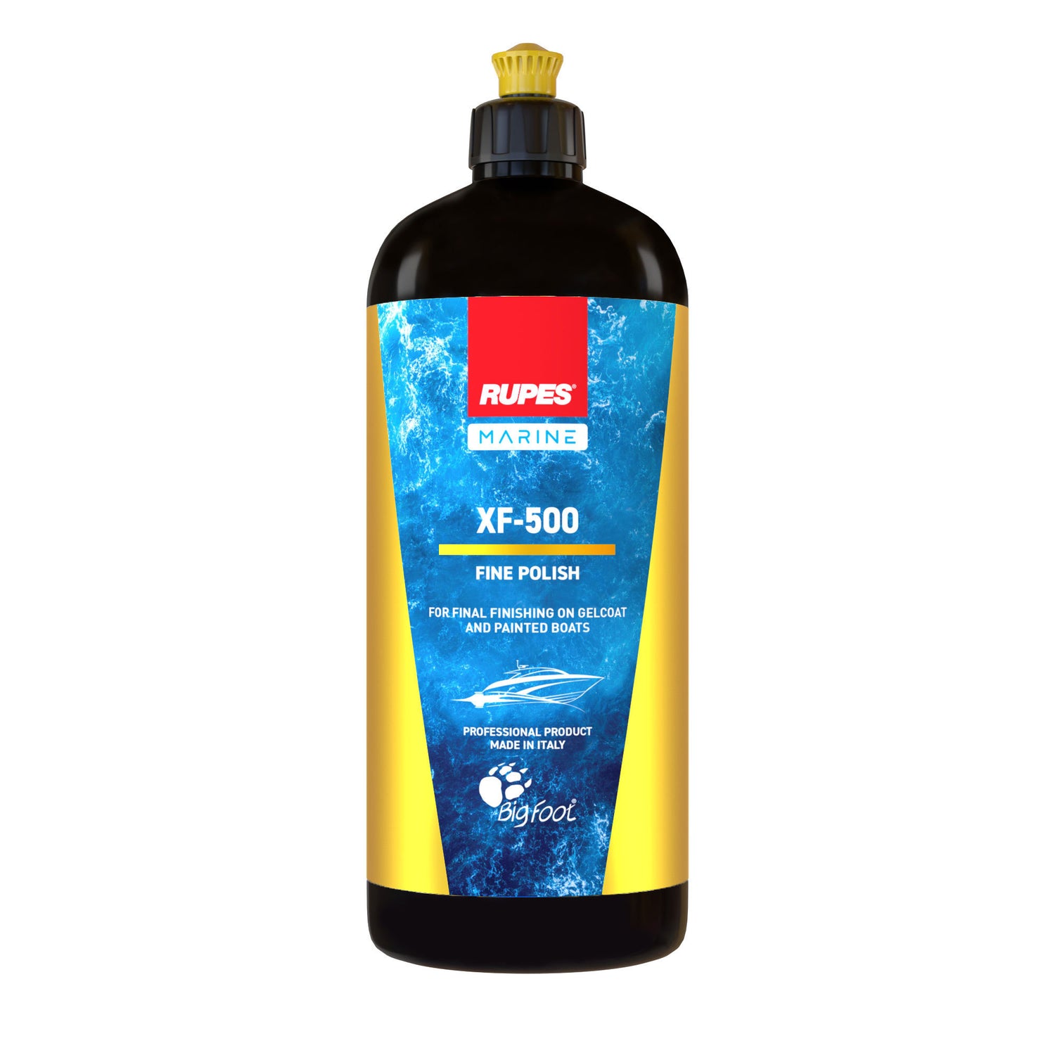 The RUPES Marine XF-500 Fine Polish is formulated specifically for clarity and depth of gloss on gelcoat and painted boats and yachts.