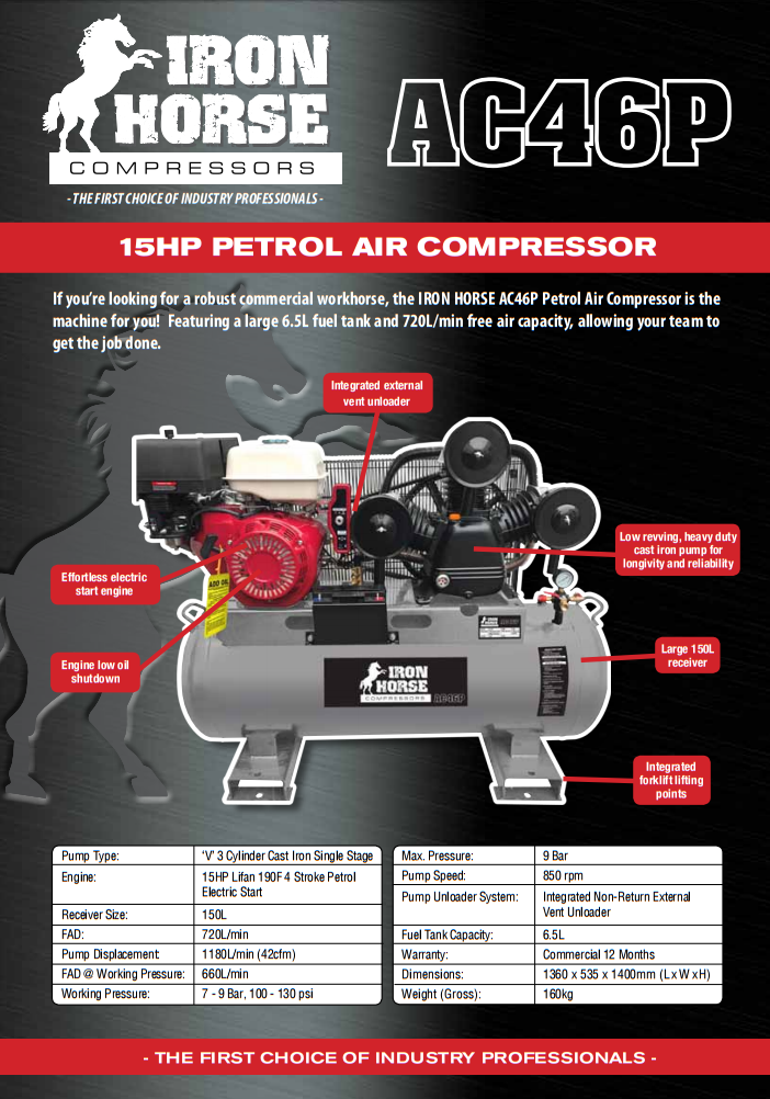 Iron Horse 15HP Petrol Air Compressor, AC46P