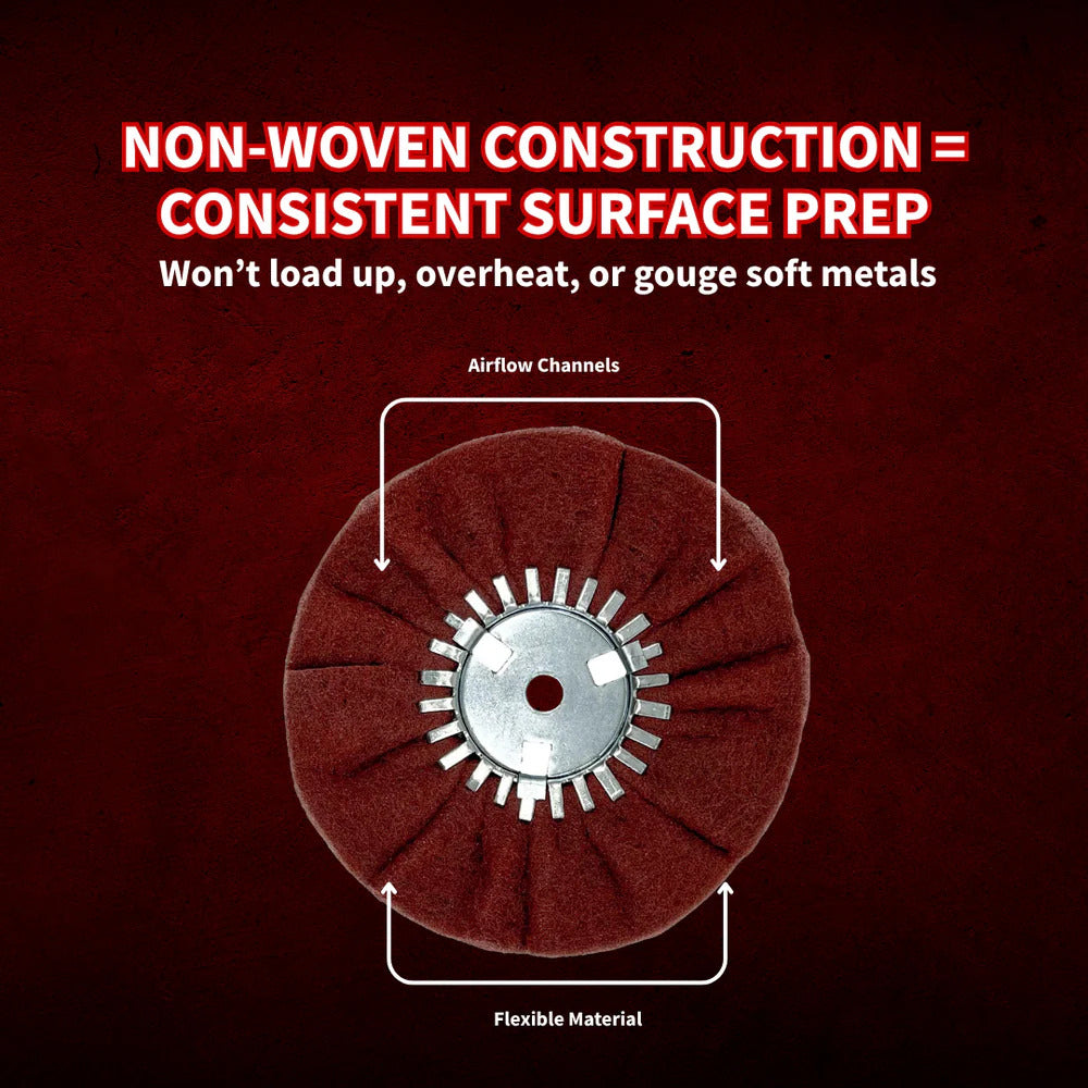The combination of the Maroon Very Fine Satin Buffing Wheel and the Ultra Fine Black Satin Airway Buffing Wheel is designed to eliminate the need for conventional sanding discs in most cases--cutting your prep time and your cost.