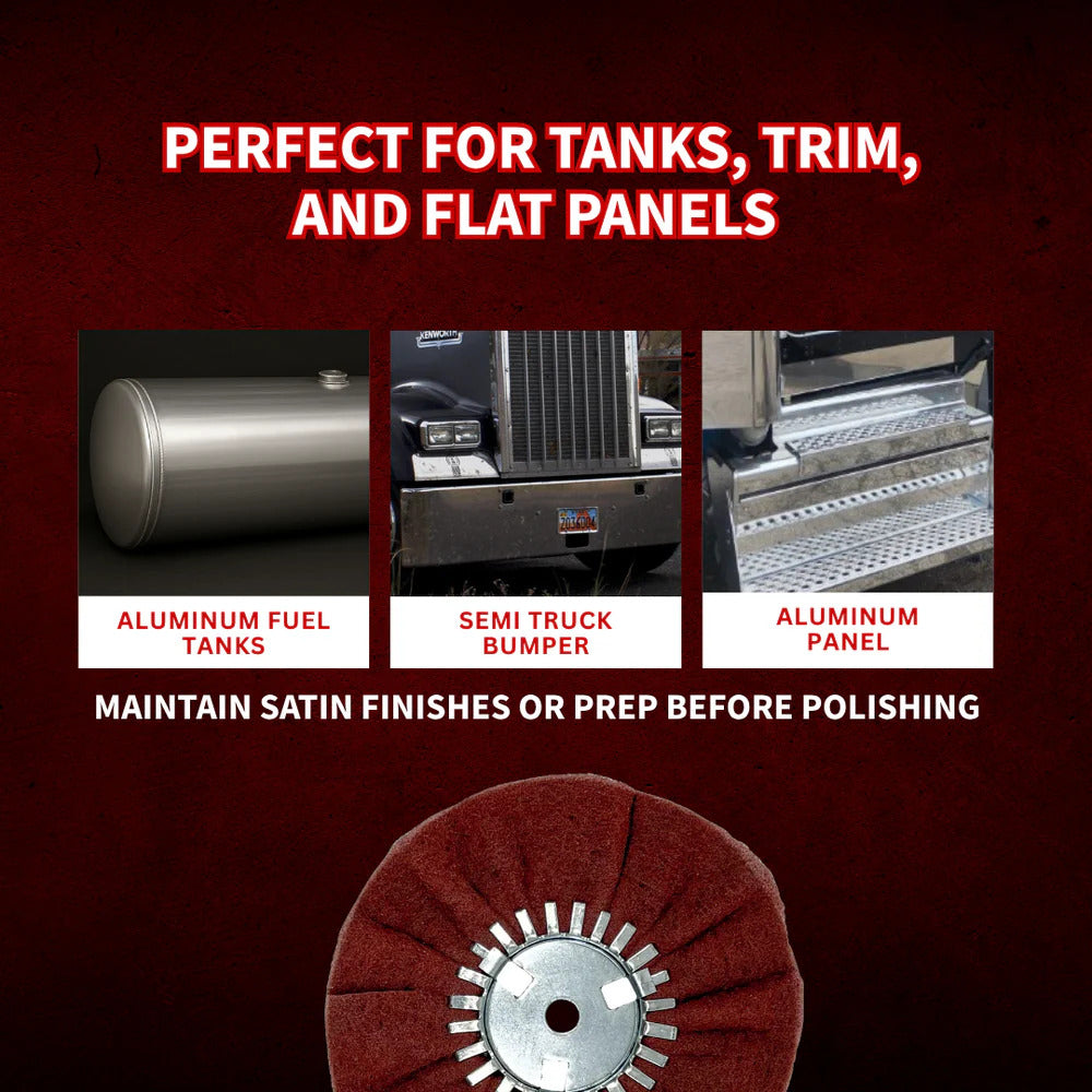 Satin Airway Buffing Wheels are the perfect lead-in to the Renegade Orange and Yellow Airway Buff Wheels.