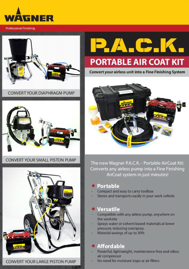 The new Wagner P.A.C.K. - Portable AirCoat Kit converts any airless pump into a Fine Finishing AirCoat